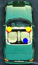 Von hinten Eine Variante, die hier nur der Vollständigkeit wegen aufgeführt ist, wäre die ausschliesliche Verwendung eines Hecksystems. Das hat man früher oft bei 5-Türern in der Kofferraumablage gesehen. Halten tue ich davon nichts. Man setzt sich ja auch zu Hause nicht mit dem Rücken zur Stereoanlage. Der Einbau kann recht problemlos in der Trennwand zum Kofferraum erfolgen. Dabei sollte diese durch ein stabiles Brett ersetzt werden. Bei den Tieftönern sollten nur solche mit geringer Einbautiefe verwendet werden, da bei zusammengeklapptem Verdeck dieses recht eng an die Trennwand heranreicht und die Lautsprecher dann Scheuerstellen an der heckscheibe verursachen. Die Hochtöner Position ist generell schwierig, da diese gegen die Sitze strahlen. |